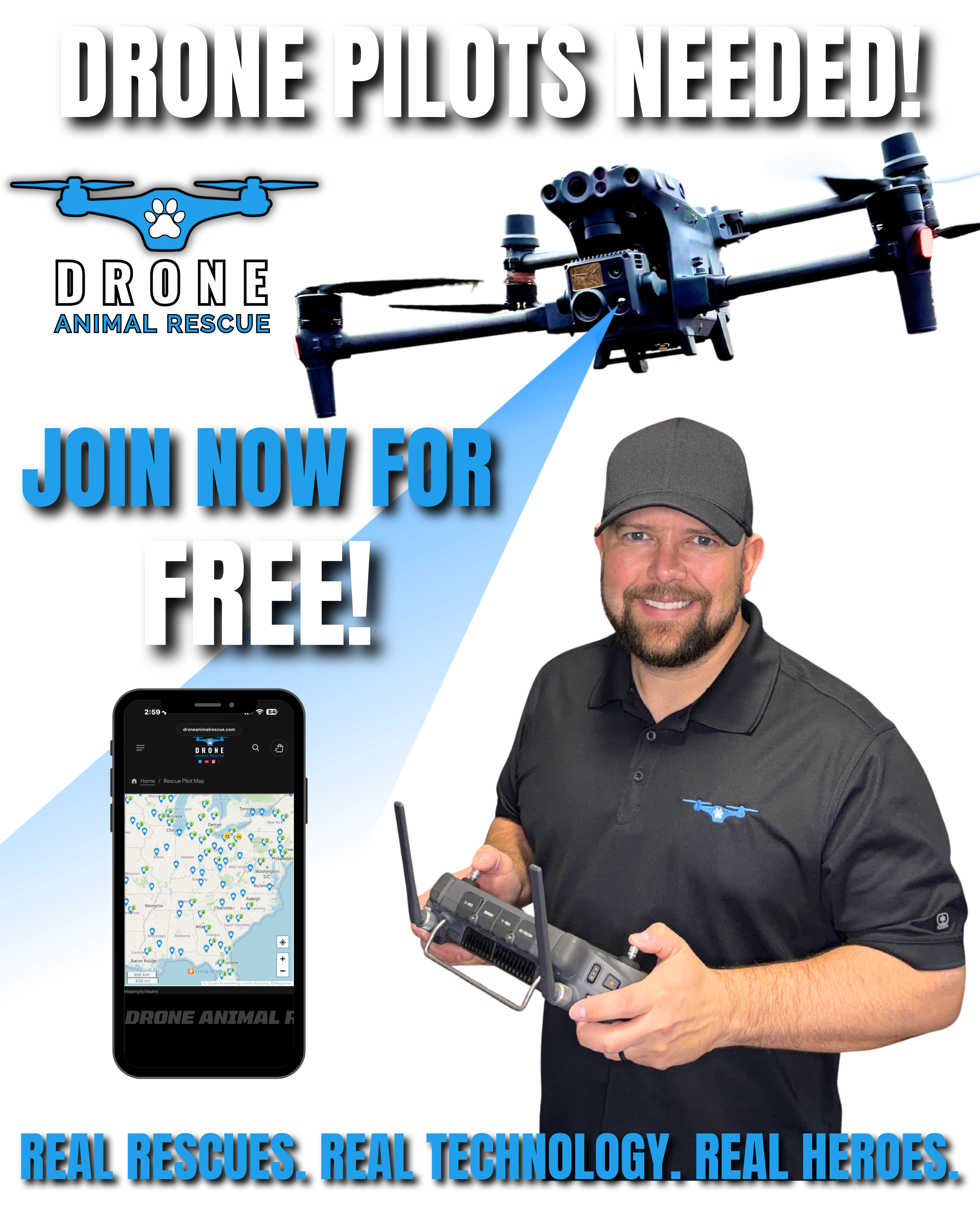 GET NOTICED BY JOINING THE WORLD'S LARGEST NETWORK OF DRONE ANIMAL RESCUE PILOTS